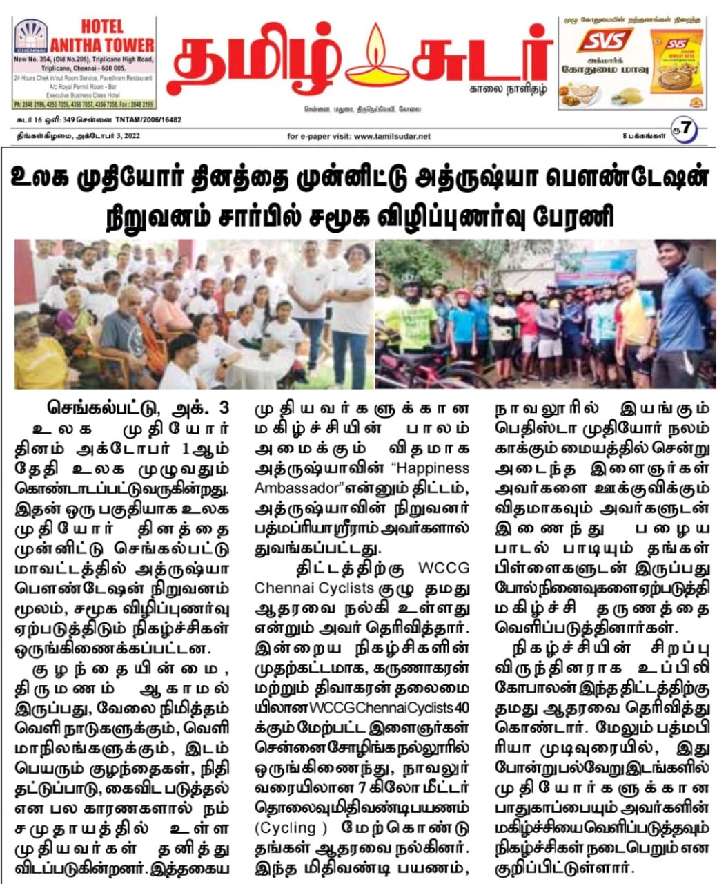 International Day for the Elderly celebrated by Adrushya Foundation on 1st Oct 2022 in Chennai.